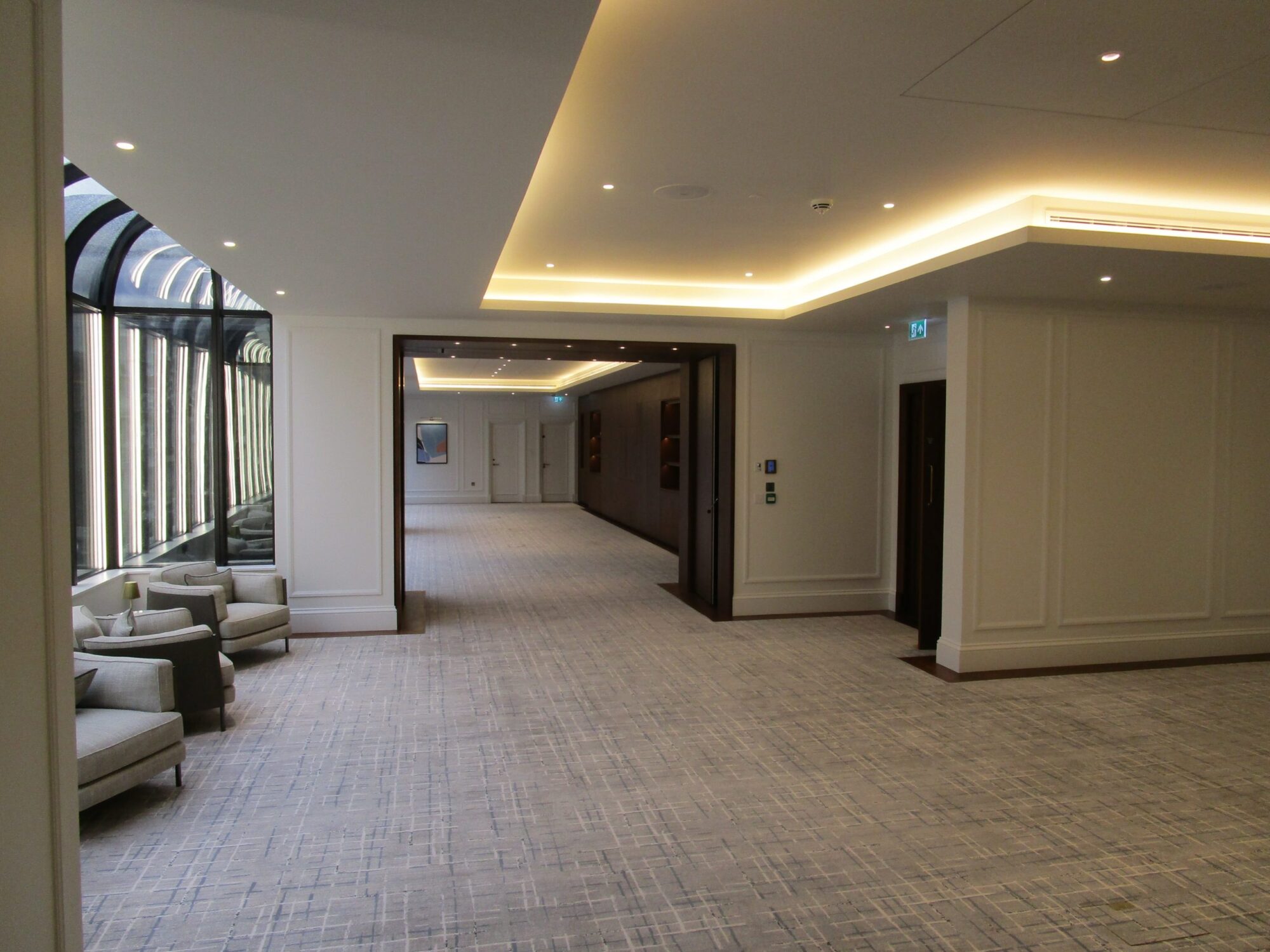 An extensive selection of Philip Payne emergency luminaires from the Architectural range were installed at the Hotel including the ceiling mounted 250FC. The original Philip Payne blade luminaire, the 250FC has been re-dimensioned and re-engineered many times, but the essential design of fixed void bracketry and a demountable gear section remains unchanged, making installation and maintenance as simple as ever.
